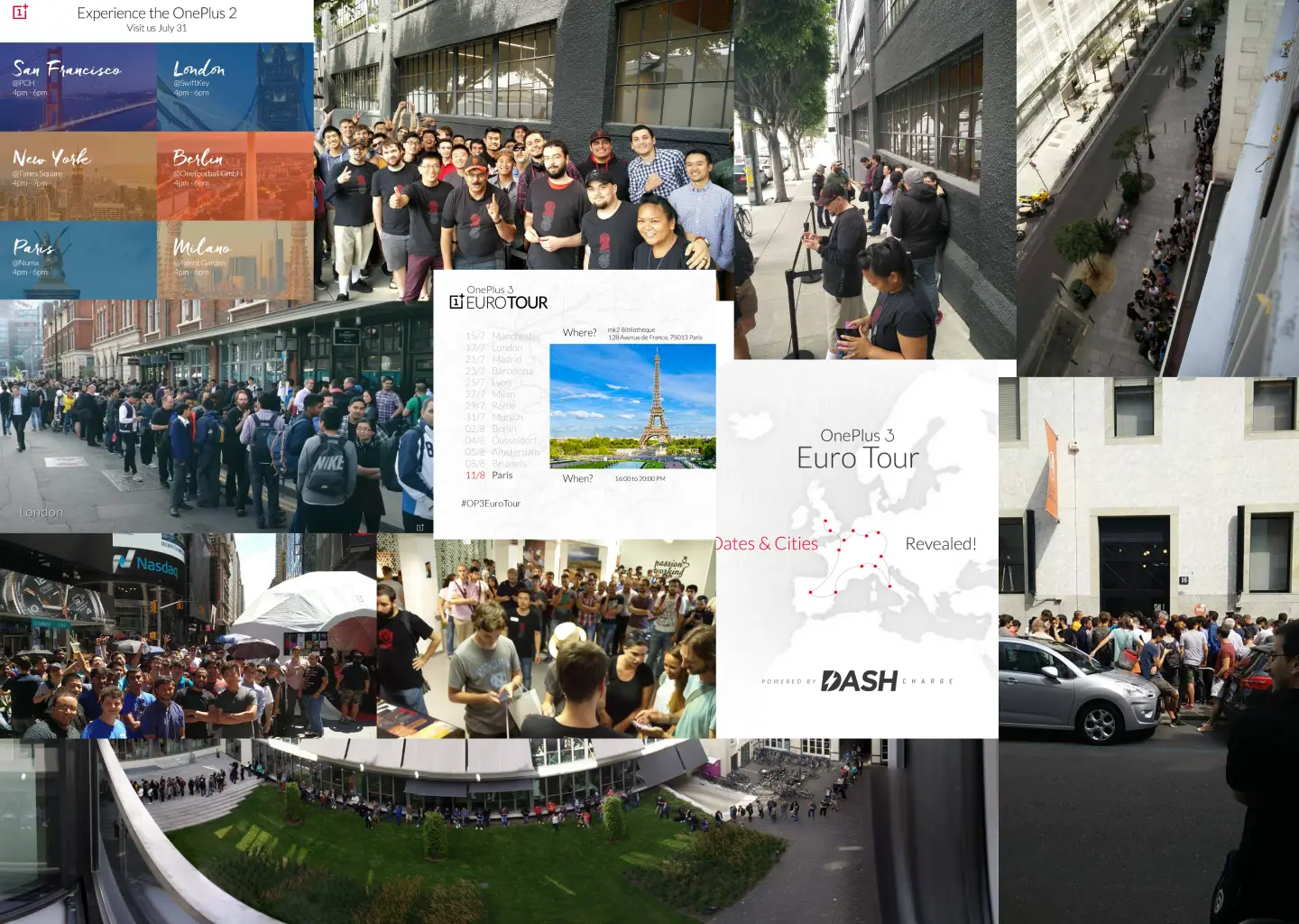 Following the launch of the OnePlus 3, we hosted 7 different pop-up events across the globe to show the OnePlus 3 to our fans in person. All seven pop-ups had hundreds to thousands of fans waiting in line, around the building, around multiple blocks in certain locations, and attracted local news TV.